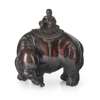 the elephant standing four-square with head turned slightly to the left, a young boy holding a lingzhi fungus seated on the top of its back covered by a rounded mat