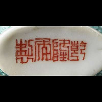 comprising: a flattened pear-shaped bottle, painted on one side with three male figures at play and the other side with an archer riding on horse, mounted with a silver stopper adorned with a coiled dragon; a flattened oval bottle painted on one side with a hunter shooting at birds, the other side with birds in flight among bamboo, moulded with two taotie rings on either shoulder, the base with a four-character Yongzheng mark in red; a bulbous jar bottle painted with a five-clawed dragon chasing a flaming pearl in red, the slightly domed stopper adorned with a flaming pear; and a flattened oval bottle painted on either side with a cricket and a grasshopper amidst flowers, the base inscribed with a four-character Qianlong mark in red