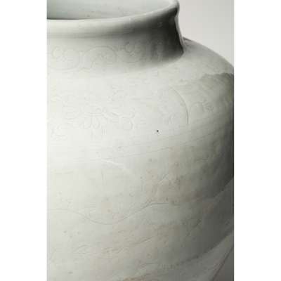 WHITE GLAZED JAR INCISED WITH FLOWERS