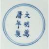potted with five lobes, each section in a bulging panel framed in underglaze blue, painted with a pair of five-clawed dragons chasing a flaming pearl above crashing waves, the base inscribed with an apocryphal six-character Wanli mark within double circles