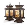 PAIR OF ZITAN AND REVERSE-PAINTED GLASS HANGING LANTERNS