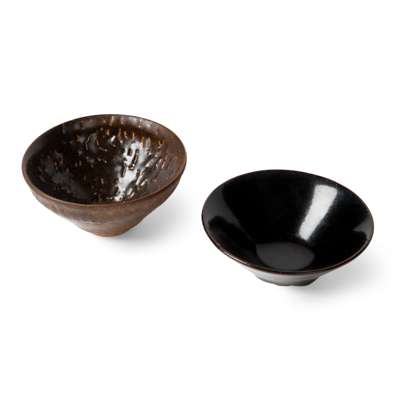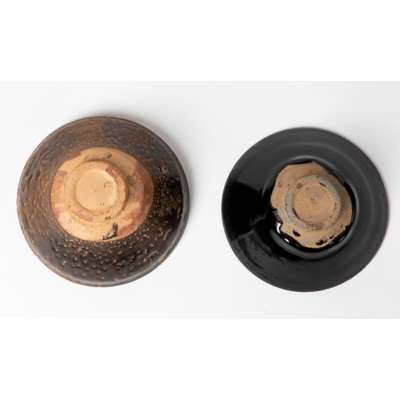 宋代 建窯烏金釉及生燒茶碗(一組兩件)