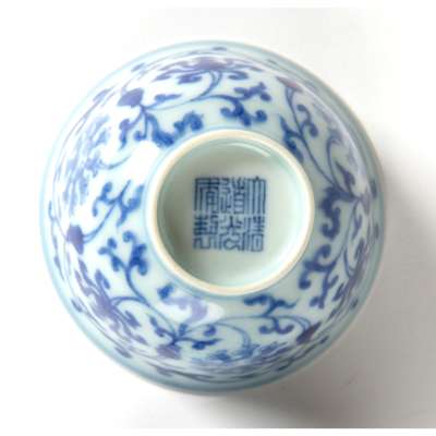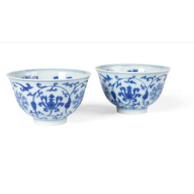 道光 青花纏枝寶相紋茶杯成對