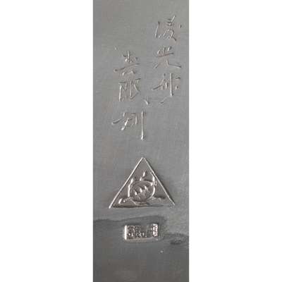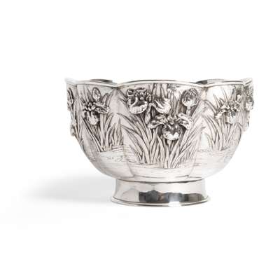 raised on a hight foot, each of the eight-lobed body finely decorated with sprays of orchid stemming from an undulated pond, the base incised with a tortoise image mark within triangle, further incised with maker's mark in Kanji