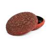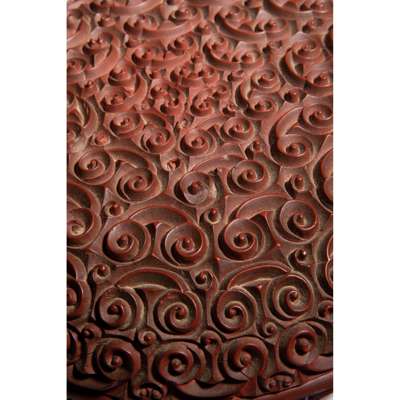 Carved lacquer of the Southern Song (1127-1279) and Yuan (1271-1368) periods often feature a newly invented abstract geometric design- ruyi cloud motif, or also known as ‘pommel scroll’ for it resembles the shape of the ring-pommel on early Chinese sword.[1] The design of carving with rows of ruyi cloud pattern often involved with intermittent red and black lacquer layers, known as tixi technique (meaning ‘marbled lacquer’), and rarely found in single colour lacquer as seen on the current example. It has generally been used as a synonym for guri lacquer, a Japanese term describing the spiral designs.[2]
