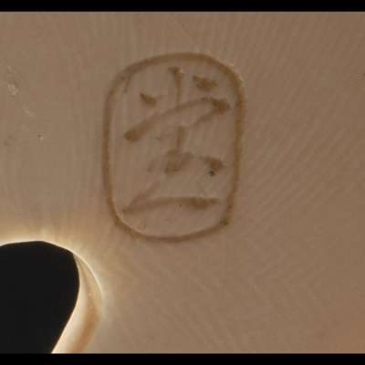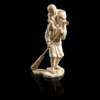 depicting an elderly man wearing slippers dragging a broom, his face benevolent carrying a playful boy piggyback, the base signed