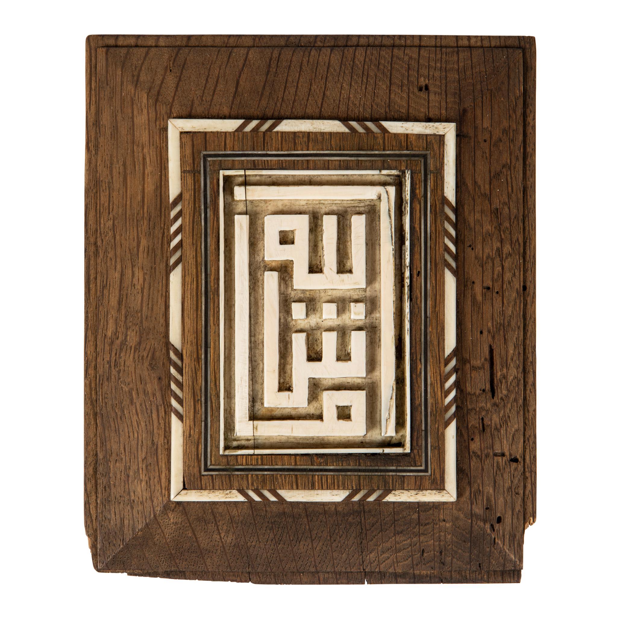 OTTOMAN IVORY OVERLAID CARVED WOOD MOSQUE PLAQUE Y