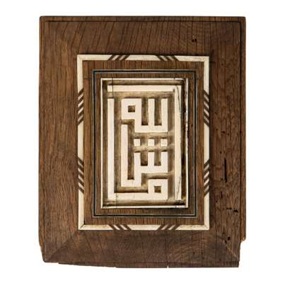 carved in relief with kufic script incorporating the bismillah; in the name of Allah