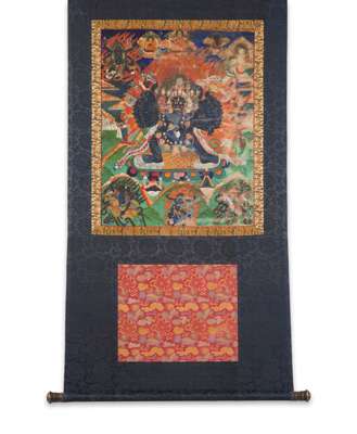 THANGKA DEPICTING YAMANTAKA AND CONSORT VAJRAVETALI