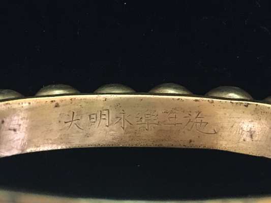 清 大明永樂年施款 鎏金銅龍紋三足座