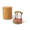 elegantly cast in the form of three elongated dragons supporting a circular stand base with a beaded ring, each dragon finely depicted with a horned head, upturned snout, arched body and swirling tail forming the feet of the stand, with well-preserved gilding, on the inner rim incised with an apocryphal six-character mark 'Da Ming Yong Le Nian Shi (Executed in the Yongle reign of the Ming dynasty)', with an original cylindrical cloth box