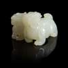 finely carved with two unicorned mythical beasts, one slightly larger than the other, each standing on four paws, the larger looked to the left, the smaller looking straight with alerted eyes, the stone of even translucent white colour