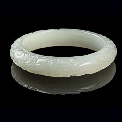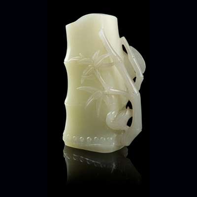 CELADON JADE 'DEER AND CRANE' BRUSH REST