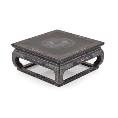 MOTHER-OF-PEARL INLAID BLACK LACQUER SQUARE WOODEN STAND