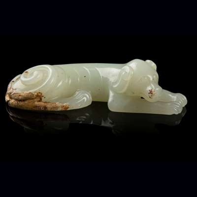 RARE PALE CELADON JADE CARVING OF A BIXIE