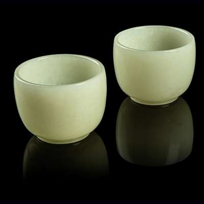 PAIR OF PALE CELADON JADE CARVINGS OF GARUDA