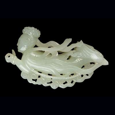 RARE WHITE JADE 'DAYLILY' PENDANT