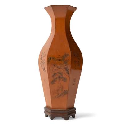 HEXAGONAL VASE WITH BAMBOO APPLIQUE
