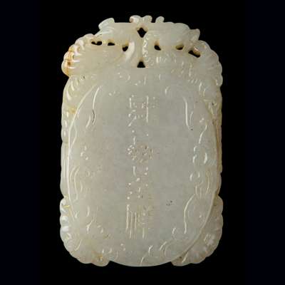 PALE CELADON JADE 'DRAGON AND PHOENIX' PLAQUE