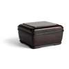 top of the cover raised with flattened top, the body tapering down and supported on four feet, further with a rectangular recessed panel on the base