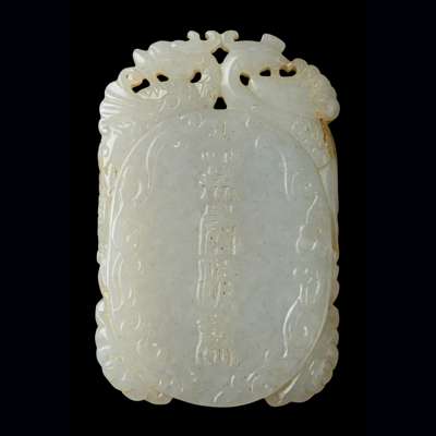 PALE CELADON JADE 'DRAGON AND PHOENIX' PLAQUE