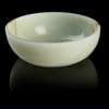 the shallow, rounded sides rising from a slightly recessed base to a straight rim, the pale green stone with russet inclusions and opaque white flecking