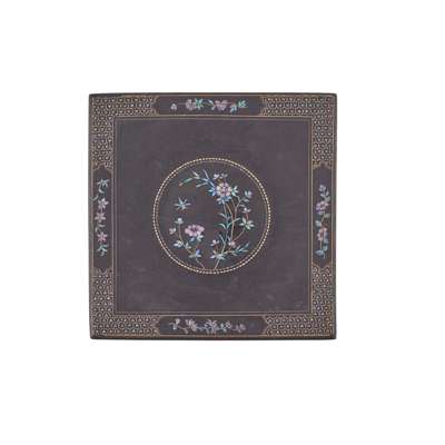MOTHER-OF-PEARL INLAID BLACK LACQUER SQUARE WOODEN STAND