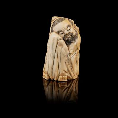 IVORY CARVING OF A NAPPING SCHOLAR Y