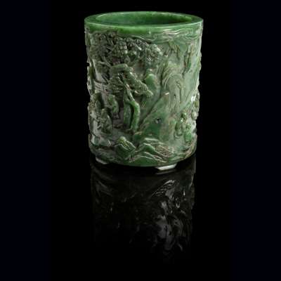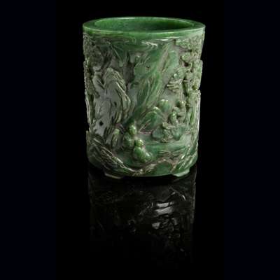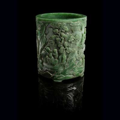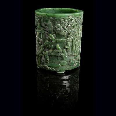 SPINACH-GREEN JADE 'SCHOLARS' BRUSH POT