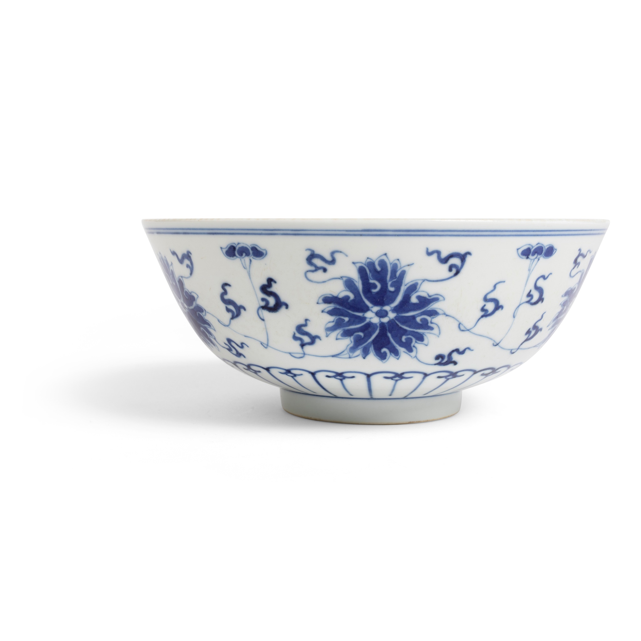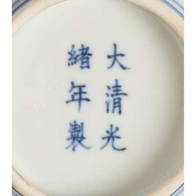 thinly potted, delicately decorated on the body with stylised lotus blooms borne on slender stems issuing flame-like foliate and floral, all above a shaped panel-band from the foot, the base inscribed with a six-character Guangxu mark