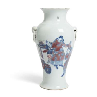 BLUE AND WHITE WITH UNDERGLAZED-RED BALUSTER VASE