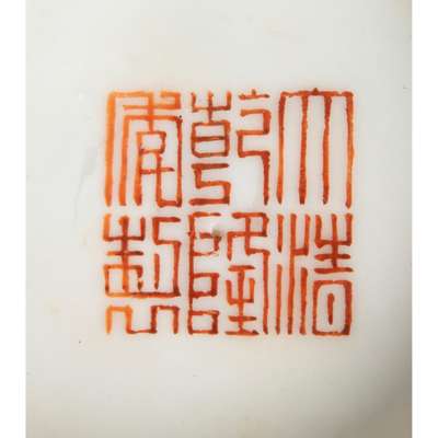 礬紅乾隆款 黑地粉彩纏枝花卉紋碗