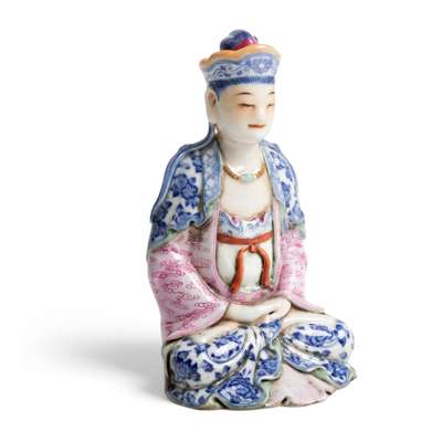 FAMILLE ROSE AND UNDERGLAZE BLUE SEATED BODHISATTVA