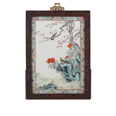 FAMILLE ROSE ‘MAGPIE’ PORCELAIN PLAQUE