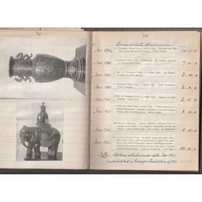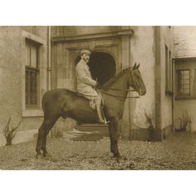 Robert Cowan Marshall (d. 1935, fig. 1) was a Glasgow Industrialist and a contemporary of the shipping magnate Sir William Burrell and Kilmarnock lace tycoon Alexander Morton. Cowan Marshall purchased Bruntshields (fig. 2) in 1896 from the local horse dealers in Paisley, the Crawfords, where he continued his passion for both the Hackney Horse but also his love for collecting. Bruntshields was home to his treasures. An image from the ledger (fig. 3) made by Cowan Marshall would indicate that this large bronze sculpture was exhibited and purchased at the Glasgow International Exhibition of 1901 and the prices were what they cost.