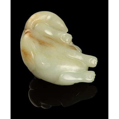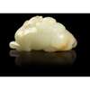 PALE CELADON WITH RUSSET SKIN JADE CARVING OF A MYTHICAL CREATURE WITH 'BAGUA'