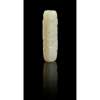 of four-sectioned tubular form, carved in low relief with a sinuous chi dragon meandering amongst the clouds on the exterior, the stone of even translucent white colour