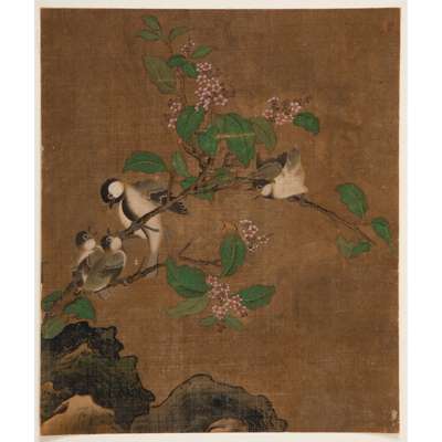 明或以後 花鳥水墨畫 絹本設色(一組兩幅)