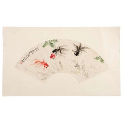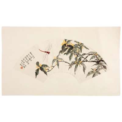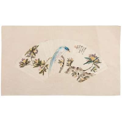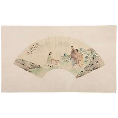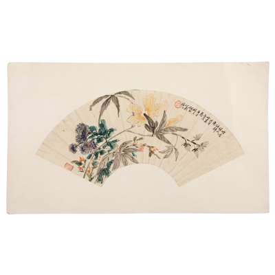十九至二十世紀 王禮及張熊等款 各式水墨扇畫七幅 設色紙本