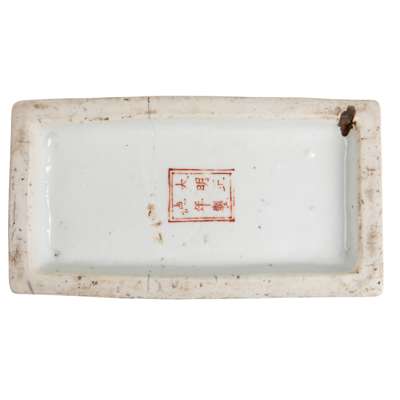 Note: a comparable blue and white rectangular pen box was excavated from Zhushan in 1988 and was exhibited in the Hunan Provincial Museum 'Decoding the Royal Kilns: Imperial Porcelains of the Ming Dynasty' during 15 Nov 2014 and 8 March 2015, and currently in the collection of the Jingdezhen Ceramic Archaeological Research Institute