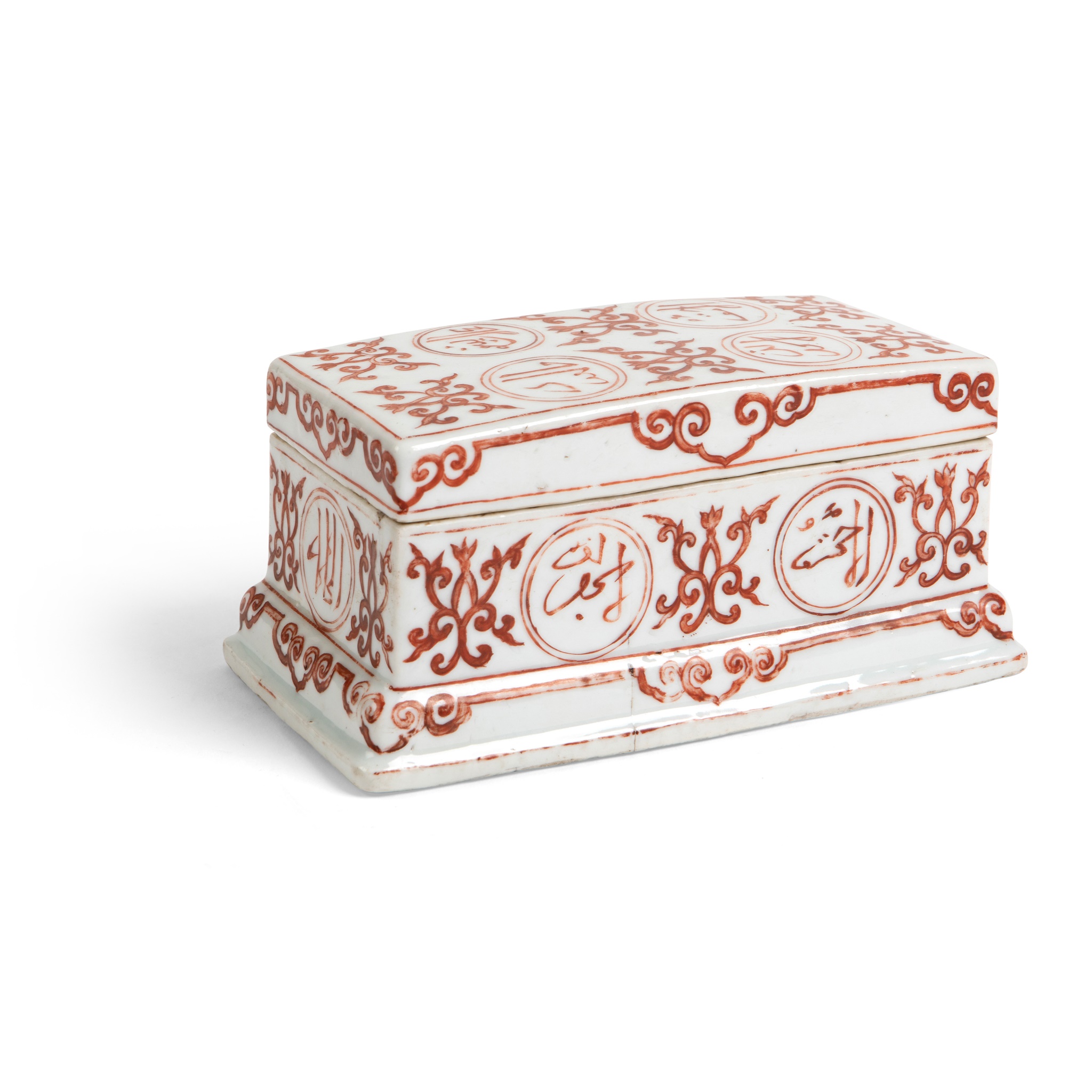 正德款或年代 礬紅彩伊斯蘭紋蓋盒