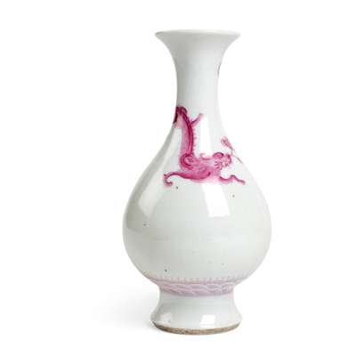 清 白釉描紅夔龍銜靈芝玉壺春瓶