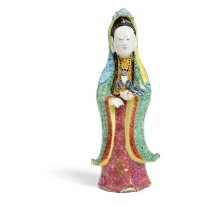 FAMILLE ROSE FIGURE OF A GUANYIN