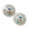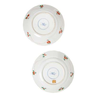 清康熙 青花爵形花押款 綠彩蝶戀花紋花口盤(一對)
