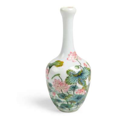 十九至二十世紀 雍正款 粉彩荷塘紋小瓶