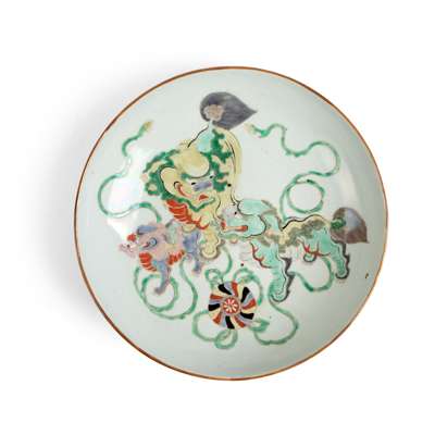 清 五彩瑞獅戲球大盤