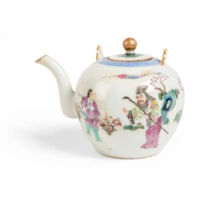 清 道光款礬紅款及年代 粉彩人物紋茶壺