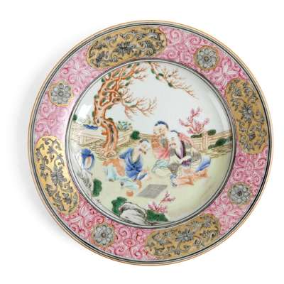 GRISAILLE-DECORATED FAMILLE ROSE 'CHESS' PLATE