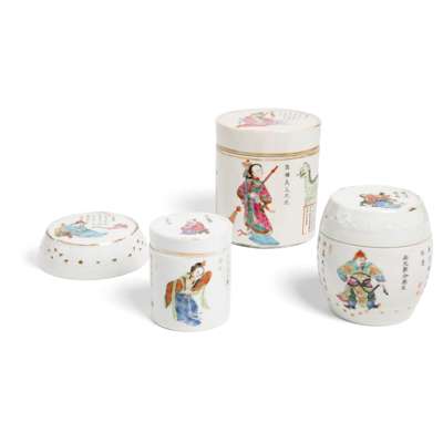 清 粉彩無雙譜蓋罐三件 及 蓋一件(共四件)