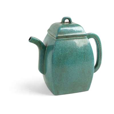 ROBIN'S-EGG-GLAZED YIXING STONEWARE EWER